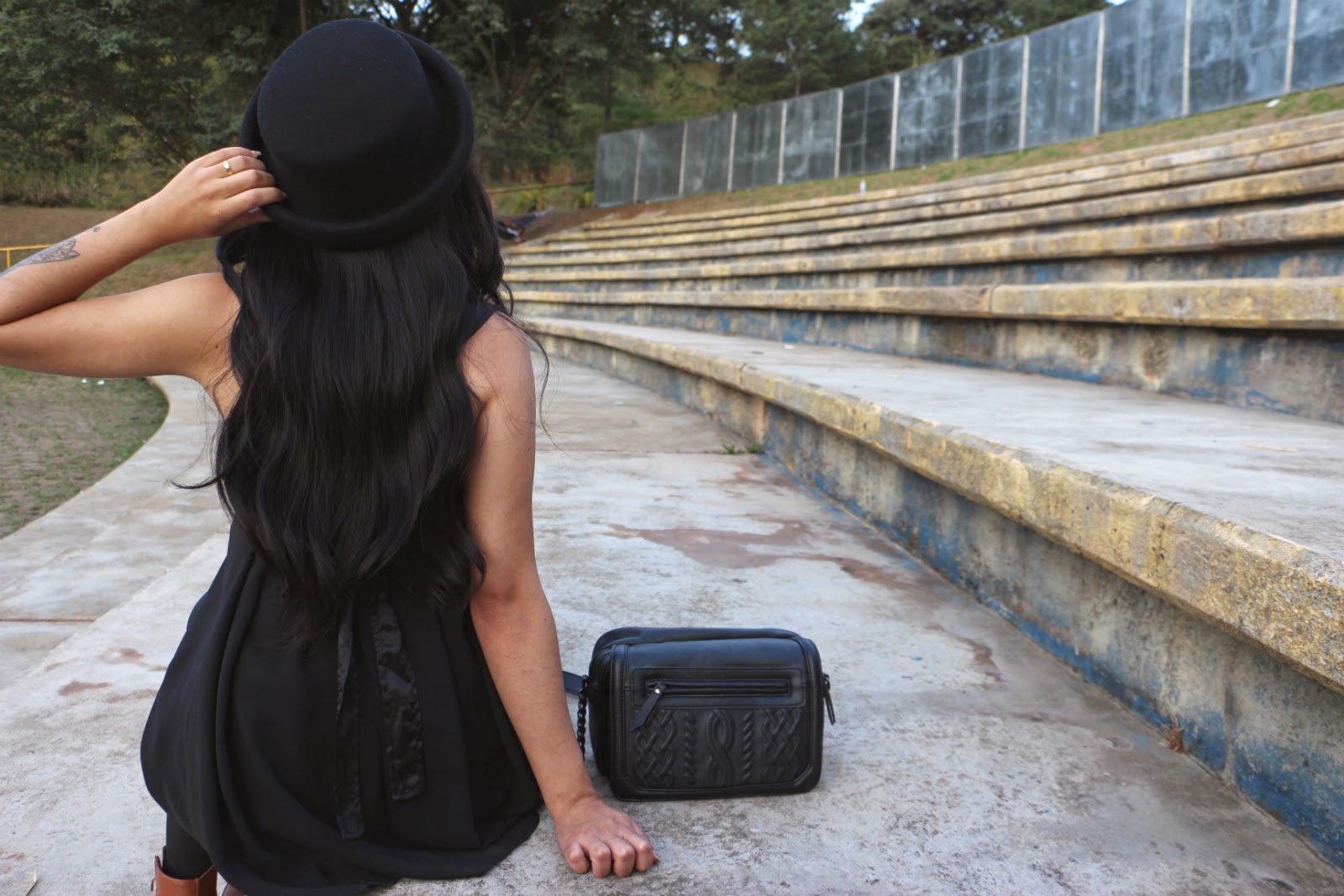 O vestido que usei é uma mini vest na verdade, claro que estou com um shorts, usei um de renda preto, só esqueci de fotografar mas mostro no vlog depois.